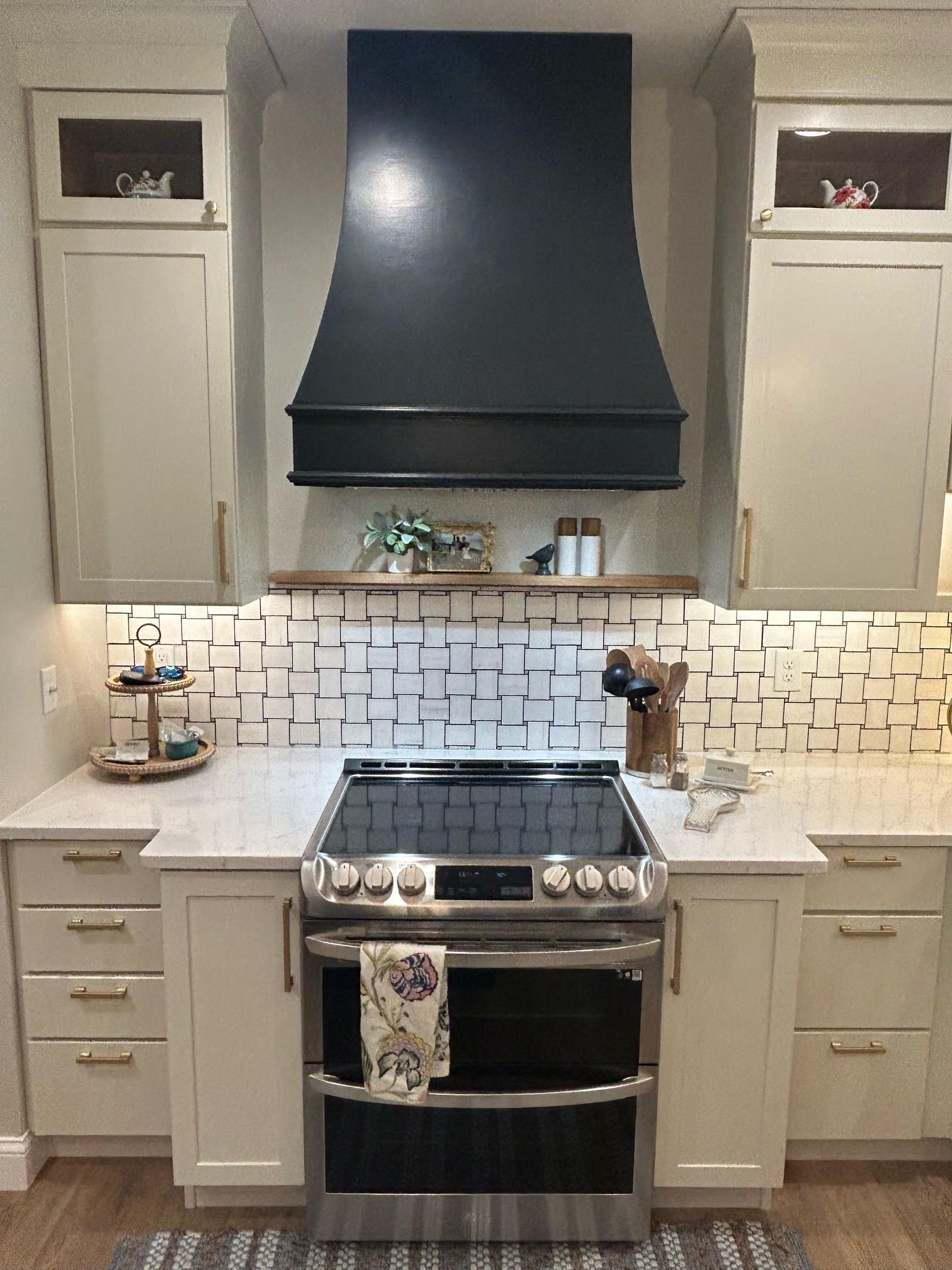 While we have over 100 variations of custom styles and wood unfortunately, we never get to see our hoods when they are finally installed in their new home. So, we are very thankful when our customers send us pictures of the final install.
